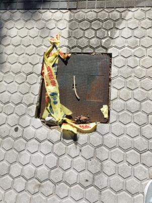 Está arqueta en la Avda. De Zarautz lleva varias semanas en mal estado. Enfrente del Distrito Hotel.