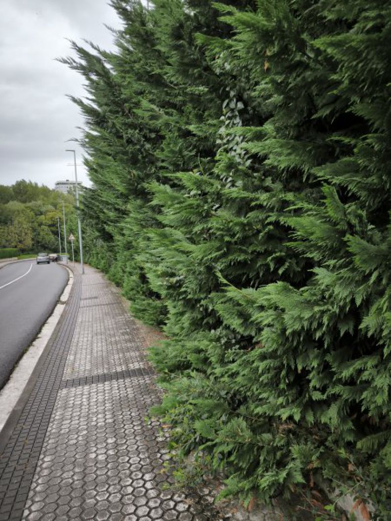 Cortar el seto de pinos que sobresale en la acera de Paseo Berio