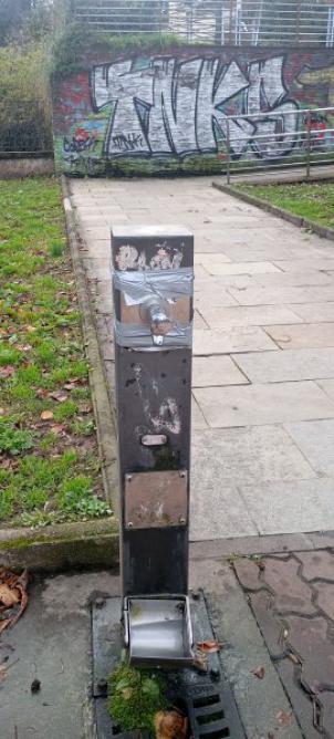 Hemos tenido que pegarle cinta de carrocero a esta fuente del paseo Txaparrene de Intxaurrondo... Lleva desencajada meses! Y el ayuntamiento? Brilla por su ausencia.