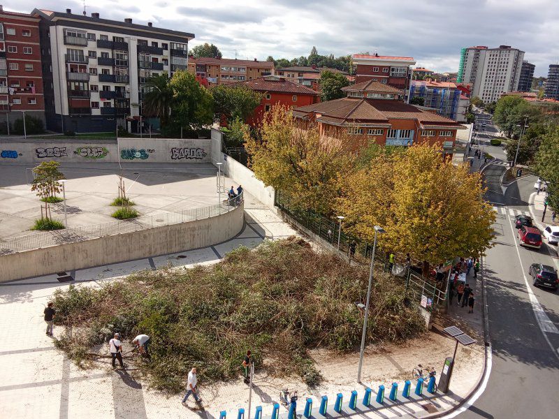 Durante años y desde la construccion del nuevo polideportivo de altza una zona verde con unos bancos fue abandonada de la limpieza y mantenimiento por parde del ayuntamiento de donostia donde aparte de mucha basura y muchas ratas cercanas a una zona deportiva infantil. Los vecinos del bartio hartos de la dejadez del ayuntamiento han decidido poner manos a la obra voluntariamente para la limpieza de dicho espacio.