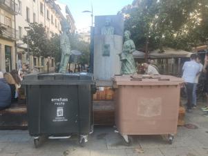 Es una pena que haya tramos de bidegorri con pavimento peatonal que no se distingue la pintura que los delimita y los peatones no se dan cuenta con el consiguiente riesgo, como ocurre en Sagües o...
