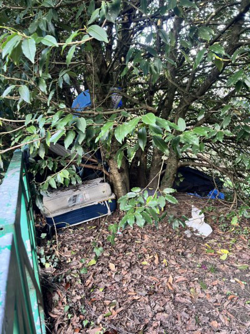 Los vecinos de Intxaurrondo tenemos miedo en la bajada de la parte trasera del Centro cívico de Intxaurrondo. Siustegui Parkea. La zona está muy poco iluminada, hay acampada detrás de los árboles y hay árboles que invaden la acera.