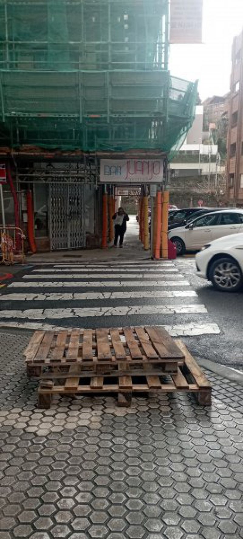 Desde hace 2 semanas hay 2 palés tapando una arqueta abierta en una acera de la C/Renteria del barrio de Gros. El agujero de unos 60-80cm de ancho, es un peligro para cualquier vecino/a además de obstruir el paso a personas de movilidad reducida y carritos de bebés.