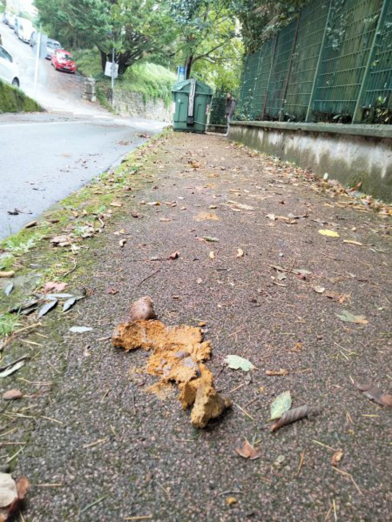 Y no, no es un derrape: alguien se la ha llevado puesta hoy. Como nosotros esta semana —dos veces de ida al cole y una de vuelta a casa—. Porque claro, hay quien no puede esperar a llegar a casa con los “recuerdos” de su mascota. Y no es cosa de uno ni de dos... Estamos deseando que abran las playas a los caninos en verano… ¿para qué? ¿Para quién? ¡Ah, ya sé! Para que la mierda se disipe en la oscuridad con el vaivén de las olas. ¡Eso es! Porque dudo mucho que alguno de estos se agache a recoger su mierda (perdón, excrementos)